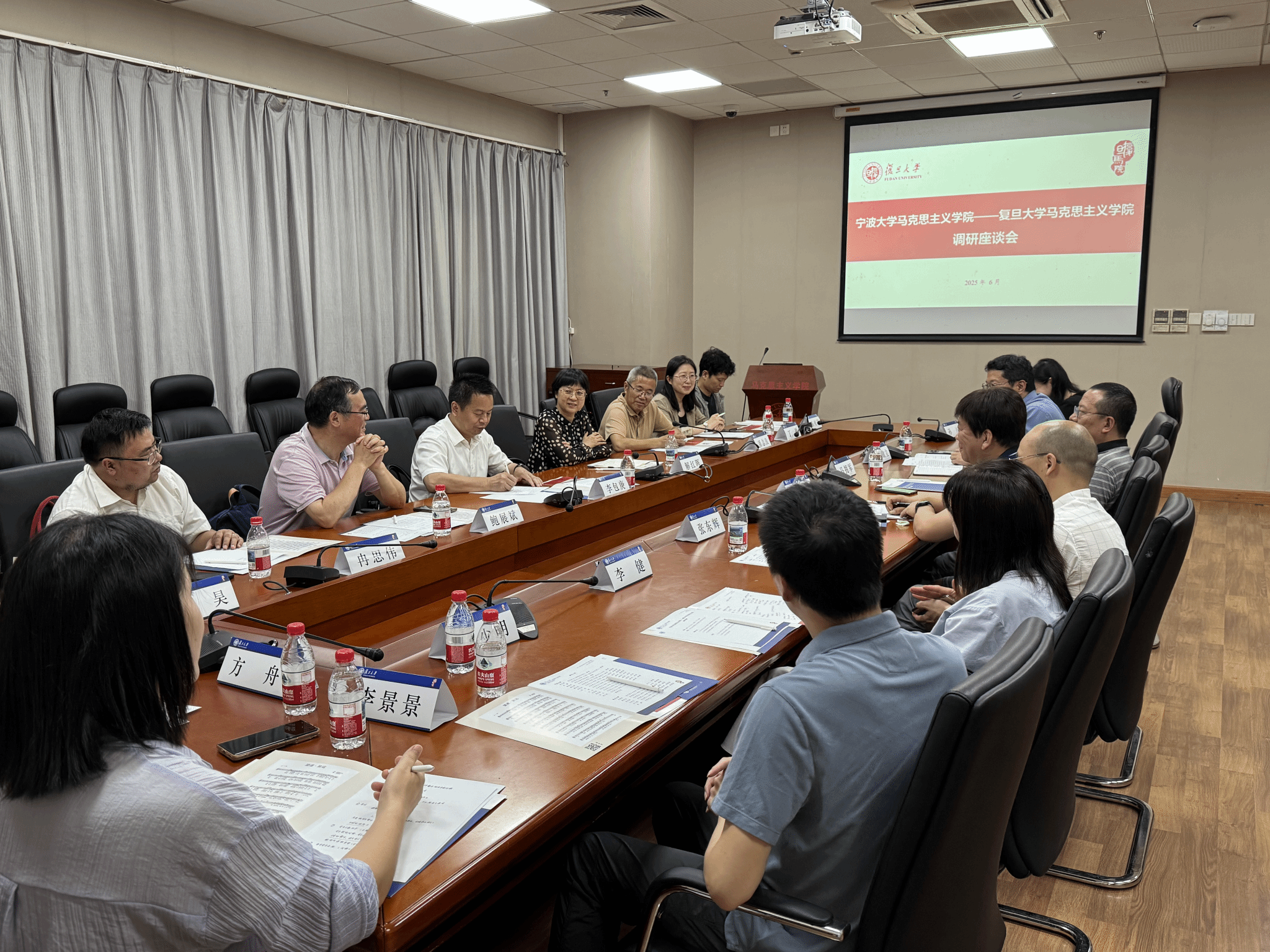 6月19日下午,马克思主义基本原理教学团队在复旦大学马克思主义学院进行课程建设专题调研。复旦大学马克思主义学院马原学科带头人马拥军教授、马原教研室主任韩欲立等出席座谈。座谈会上,韩欲立系统介绍了复旦大学马原课程教学建设的基本理念及取得的重要成果。马拥军详细讲解了如何通过高水平的科研推动课程教学建设,以及如何从教学中提炼科研问题,以解决科研与教学两张皮的困境。刘学礼等围绕课程考核、教学互动等议题谈了自己的体会。我院李包庚教授介绍了宁波大学马克思主义教学团队建设、课程改革方面的情况。鲍展斌、解红晖就复旦马克思主义理论活动周教学品牌、三集三提等进行了深入了解。在自由交流环节,双方聚焦集体备课、教学成果培育等展开了热烈讨论。