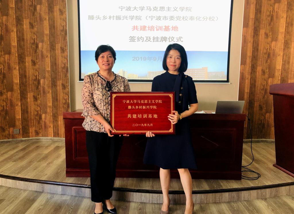 9月18日上午,在学校开展“不忘初心牢记使命”主题教育之际,为做好多样化学习教育,马克思主义学院党总支书记刘友女、副院长刘举、马克思主义中国化党支部和学生理论宣讲团一行来到宁波市奉化区滕头村开展“初心之旅”学习调研活动,双方举行了大学生思想政治教育实践教学基地和共建培训基地的签约及挂牌仪式。