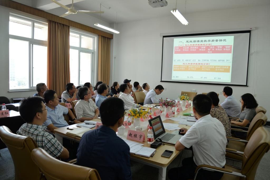 会上,马克思主义学院负责人结合学院贯彻落实全国教育大会精神和习近平总书记在学校思政课教师座谈会上的讲话精神,对近几年学校思政课开展情况和存在问题进行了总结梳理和深入分析,并结合中共中央办公厅、国务院办公厅近日印发的《关于深化新时代学校思想政治理论课改革创新的若干意见》和教育部“新时代高校思想政治理论课创优行动”工作方案的精神,重点就如何推进思政课改革提升教学质量汇报了具体思路。各系部室主任对课堂评价、教学方法、实践教学、教师的能力素养等方面提出了想法和建议。