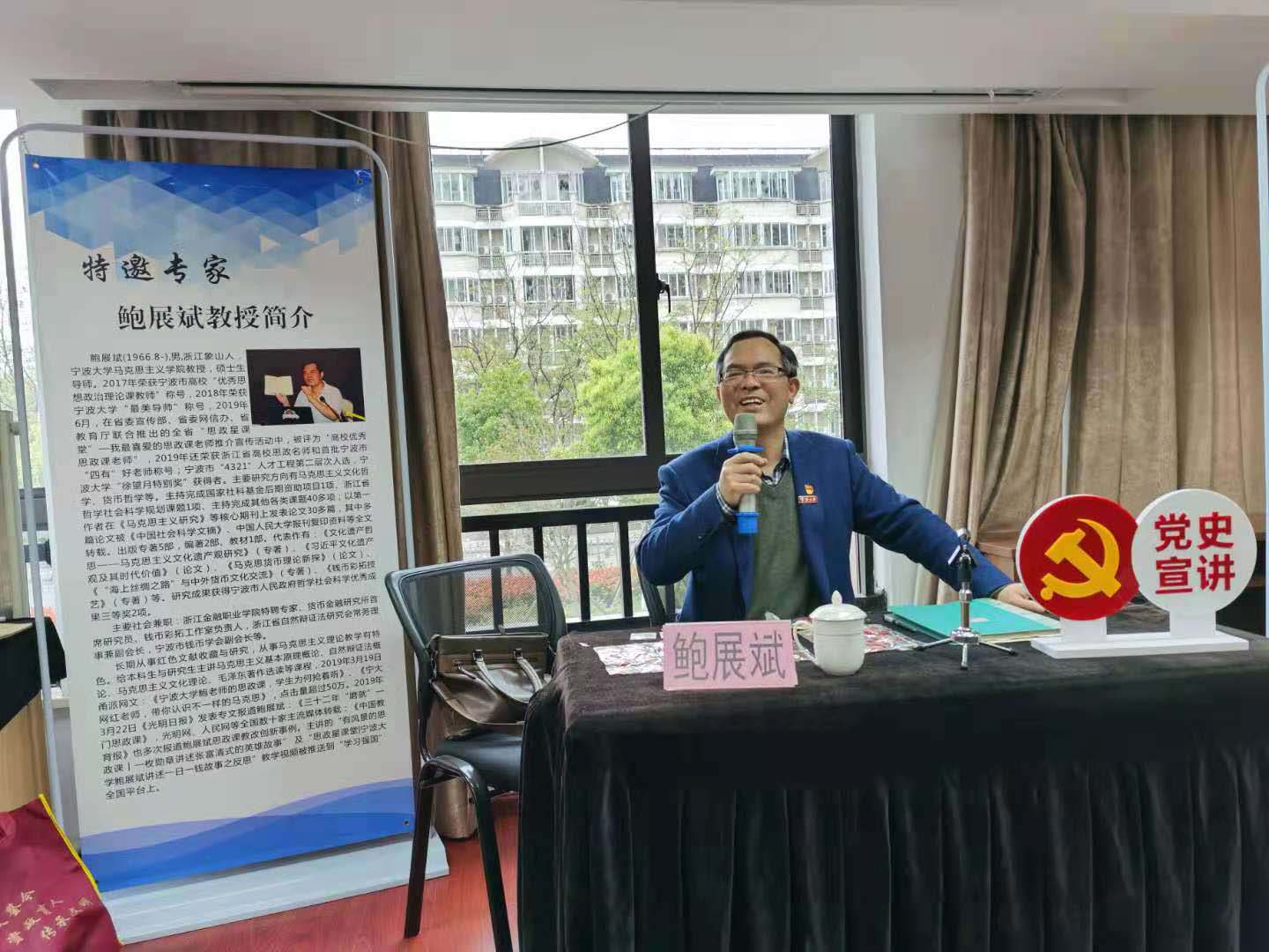 此次活动旨在通过高校与社区支部的联合行动,融合高校和社区的力量,组织开展主题作品征集,增强党史宣传教育的实效性和感染力。江北区新闻媒体对鲍展斌教授进行了现场采访。