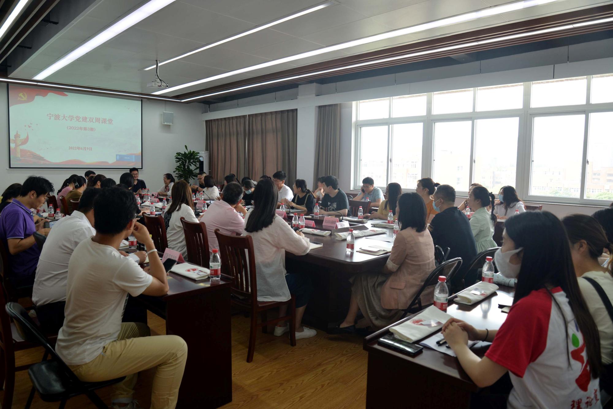 6月9日上午,2022年宁波大学第三期党建双周课堂在我院举办,会议由校组织部党建工作主管孙文静主持,全校专职组织员和党建辅导员60余人参加了会议。
