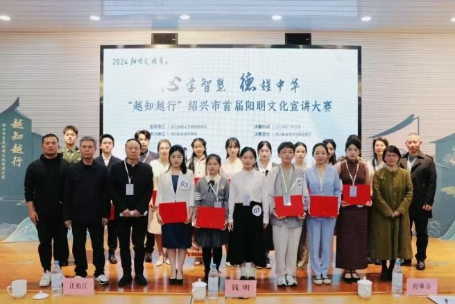 “越知越行”绍兴市首届阳明文化宣讲大赛由绍兴市委宣传部主办,浙江省稽山王阳明研究会、绍兴职业技术学院承办,旨在深入挖掘阳明元素、拓展传播渠道,提升阳明文化的影响力,推动中华优秀传统文化创造性转化和创新性发展。比赛于10月22日拉开帷幕,经评审专家组初评,15名选手进入现场决赛。11月22日,决赛在绍兴职业技术学院卓雅厅举行。